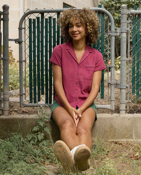 Camp Cove Short Sleeve Shirt - Boysenberry Daisy Stripe